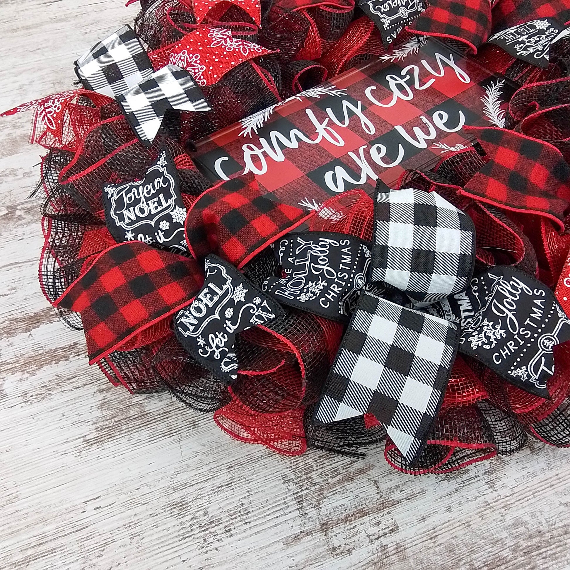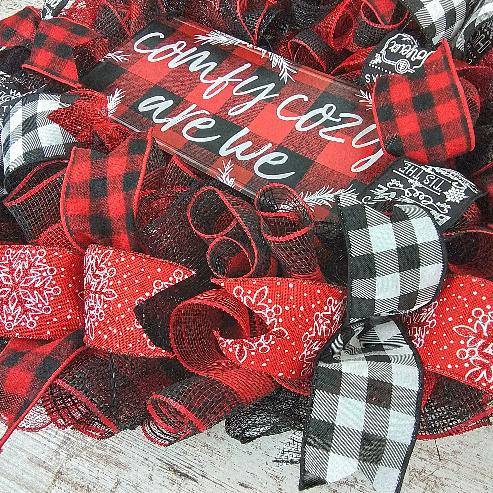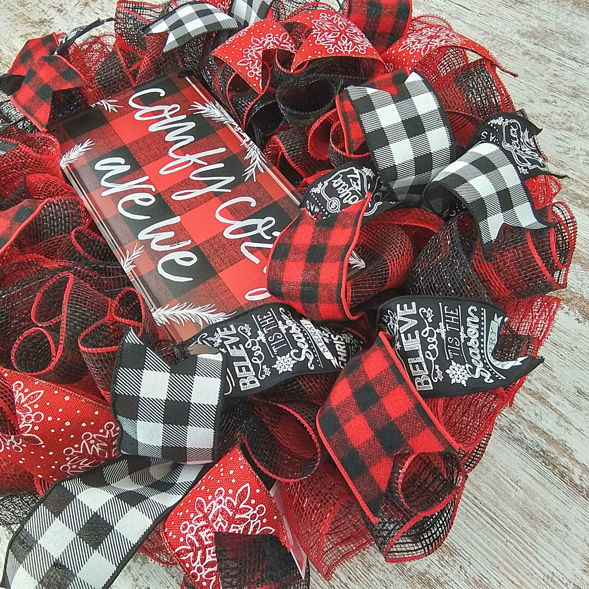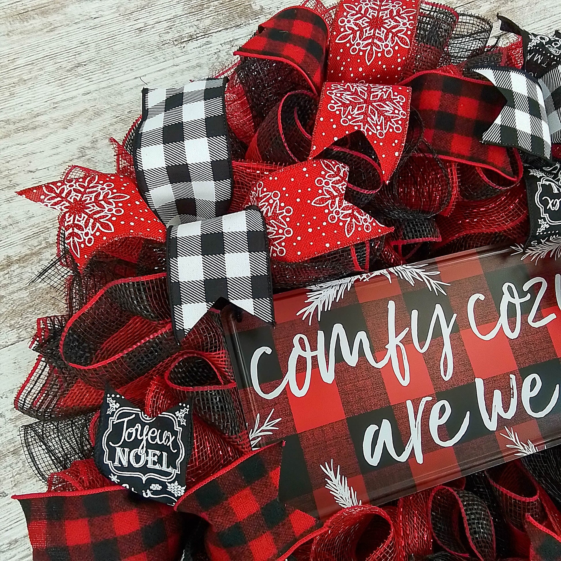 Buffalo Plaid Check Christmas Wreath | Black Red White | Comfy Cozy Are We