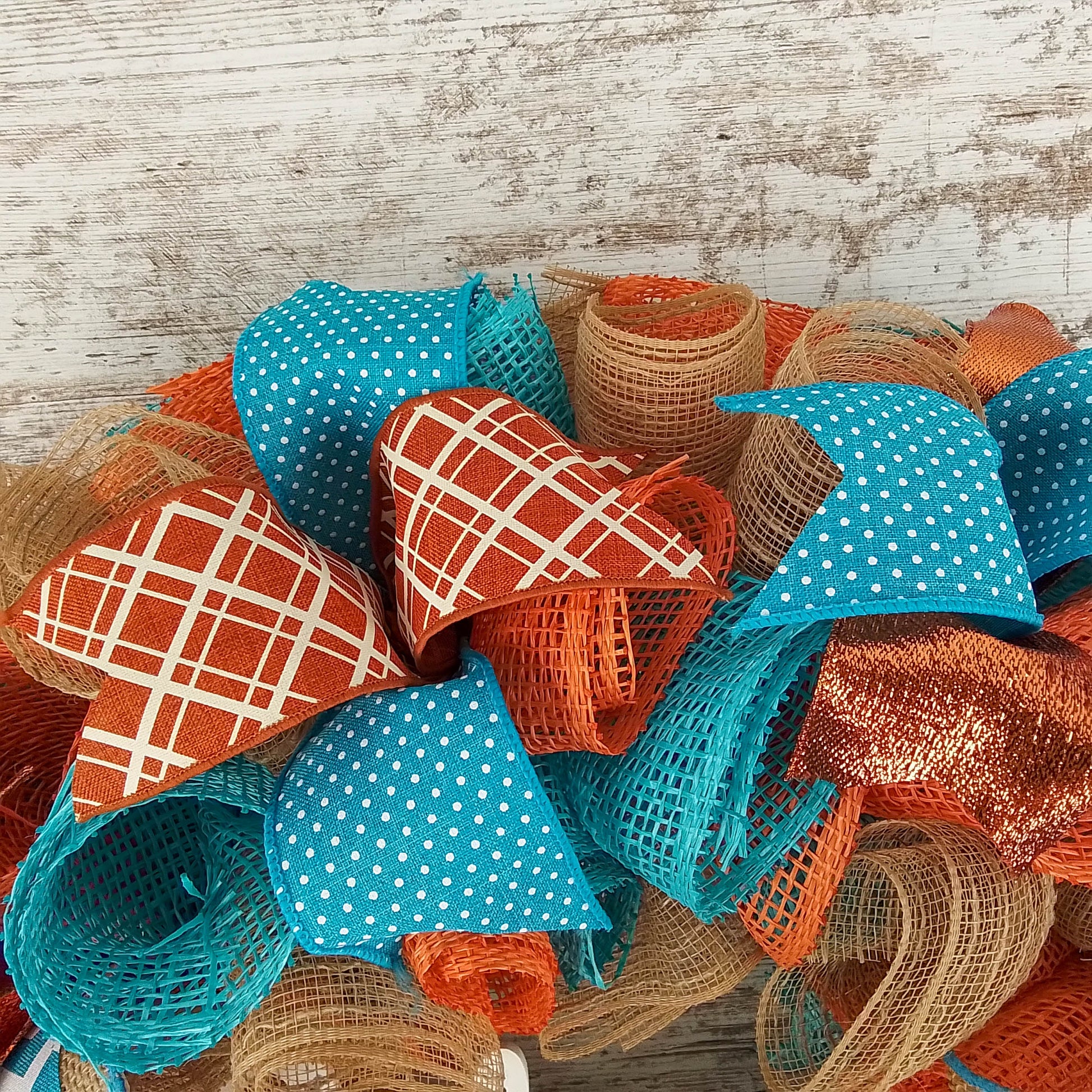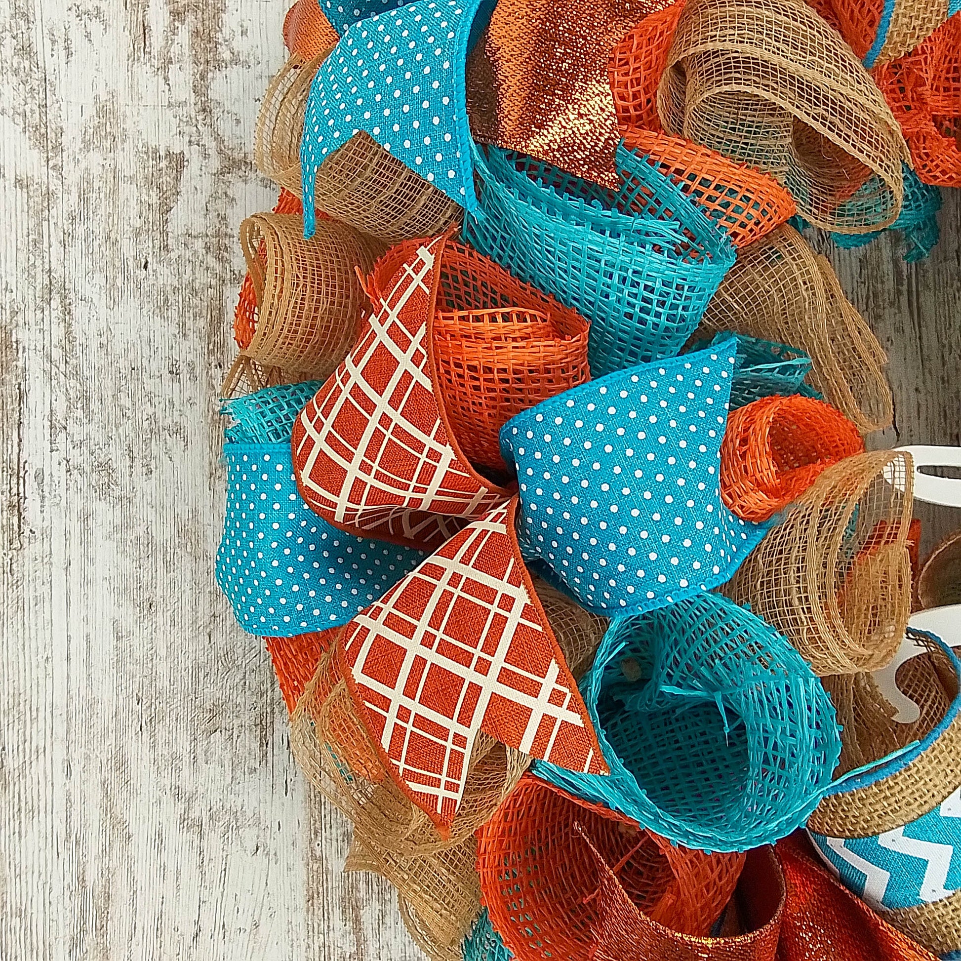 Orange and Turquoise Fall Wreath - Thanksgiving Welcome Wreath - Everyday Door Wreath - White Teal