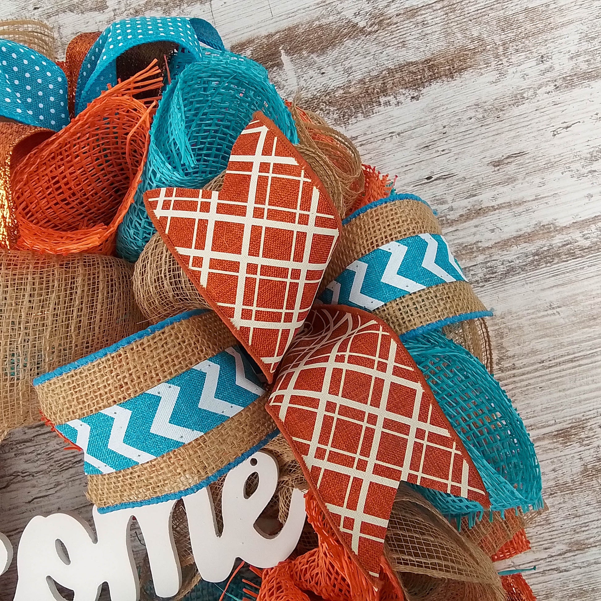 YOUR ORANGE AND TURQUOISE WELCOME WREATH: