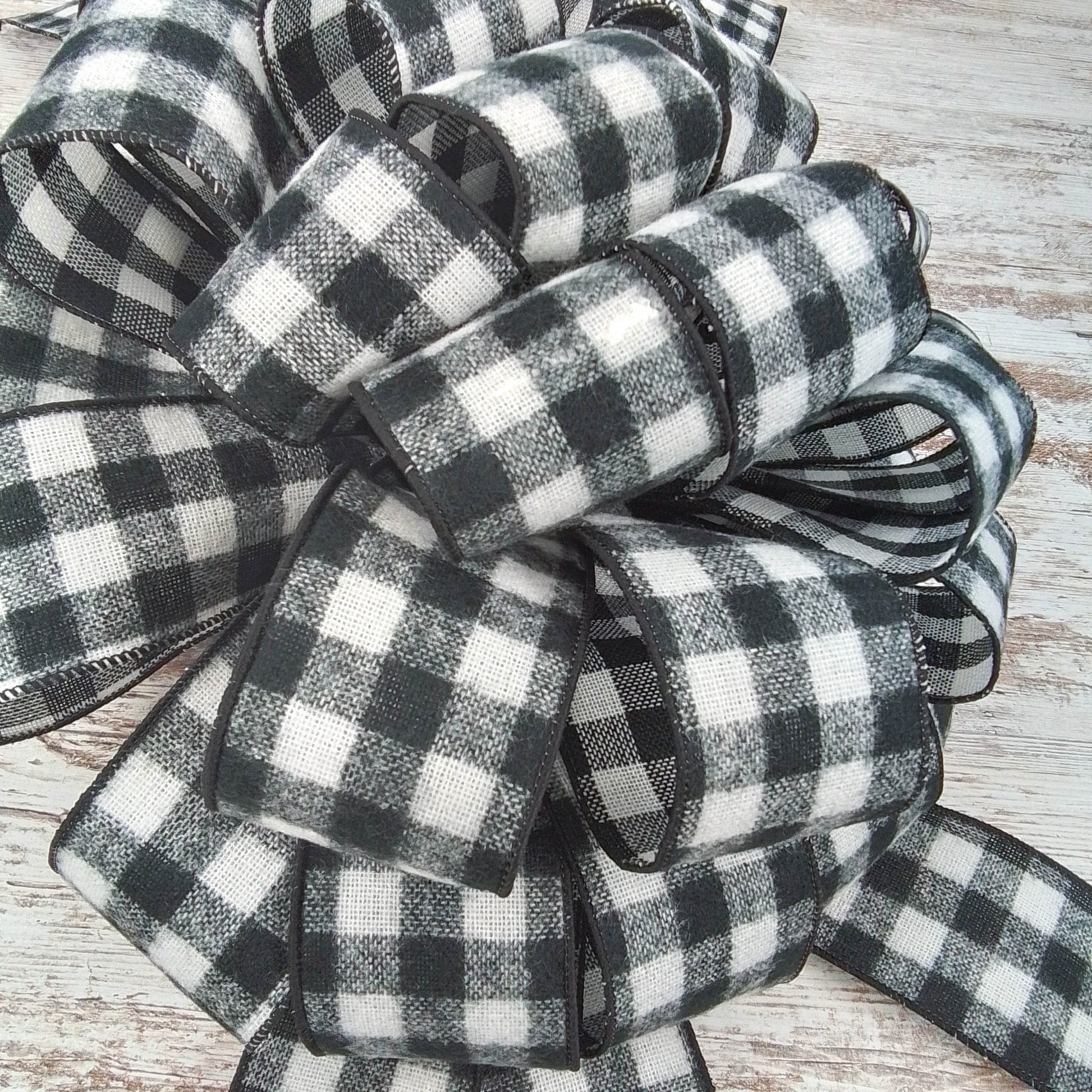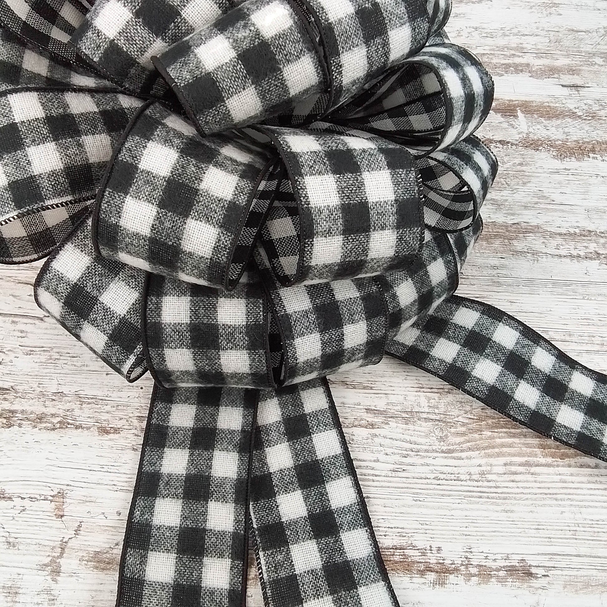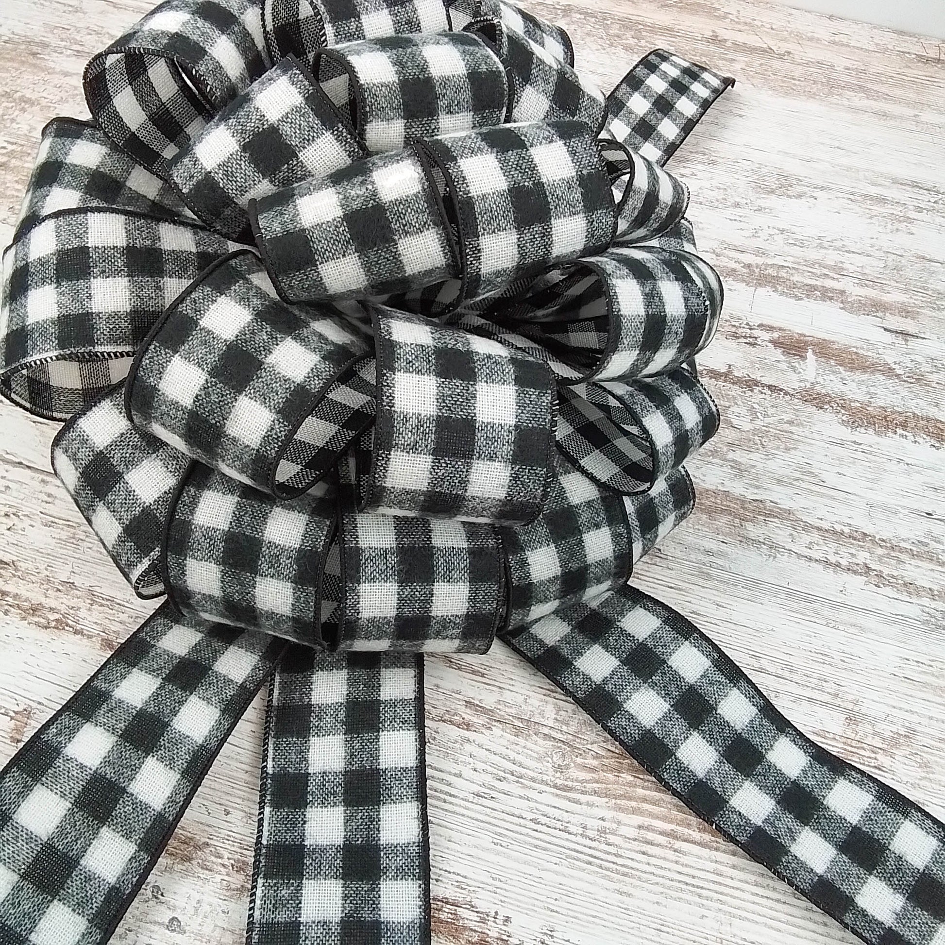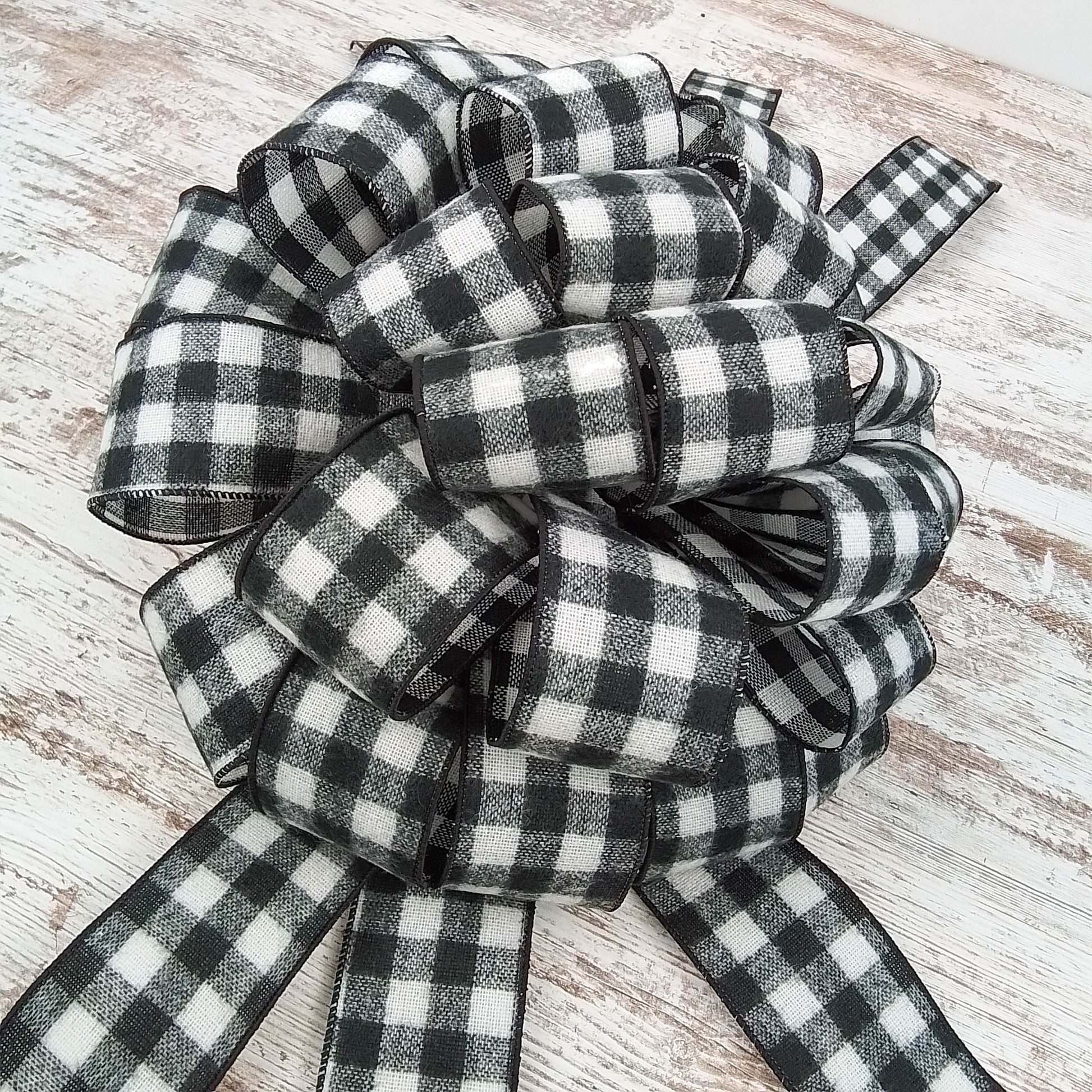 Buffalo Check Bow Christmas Tree Toppers | Black White Plaid with Tails