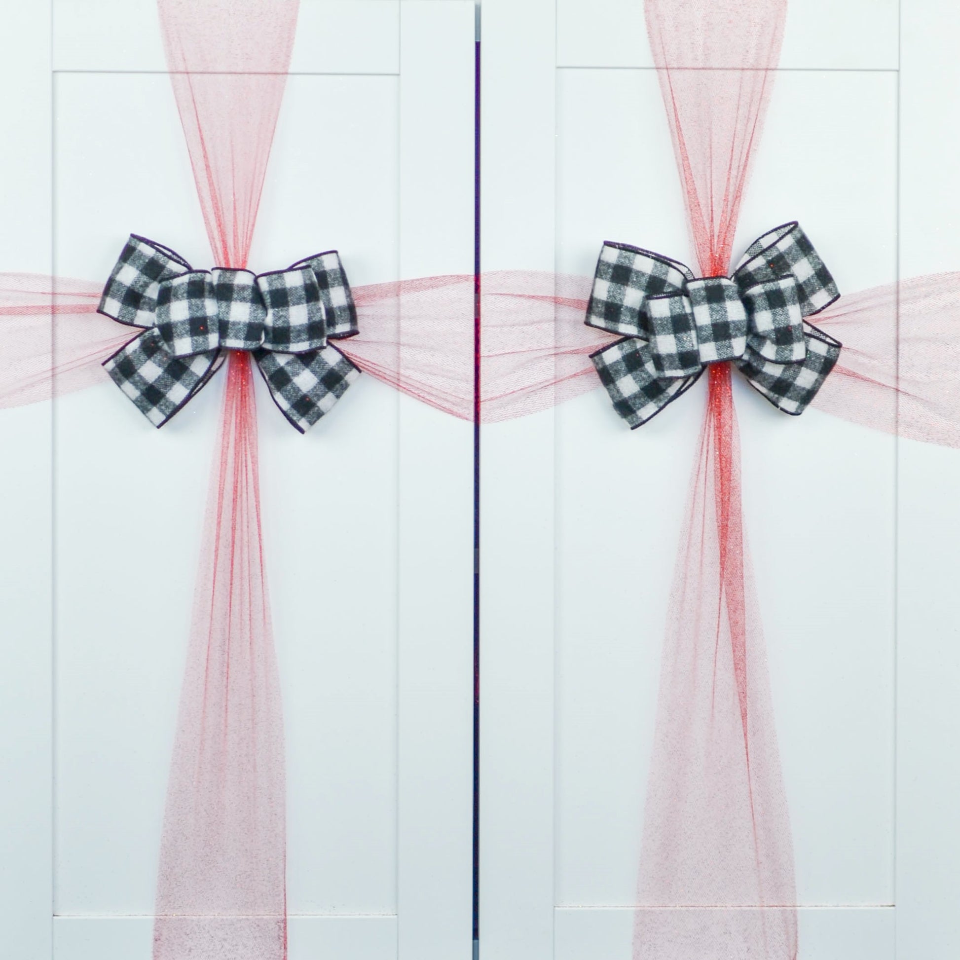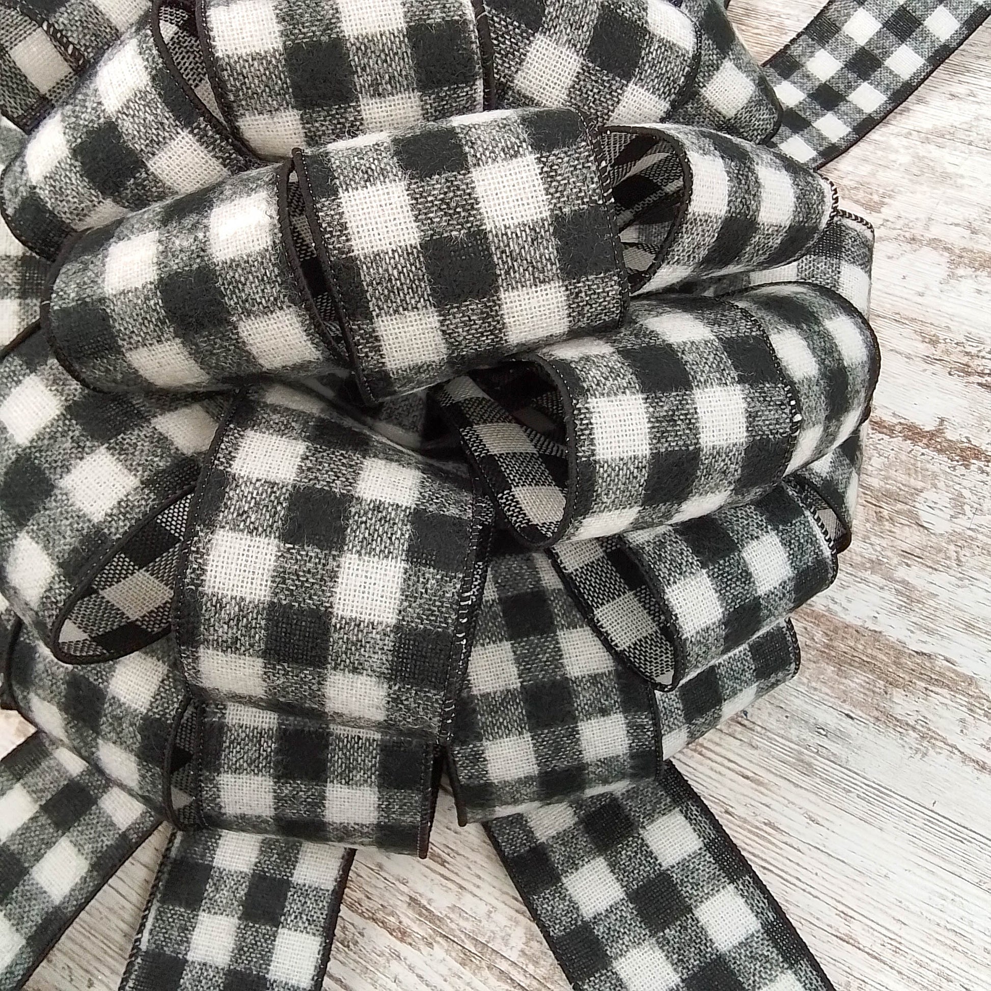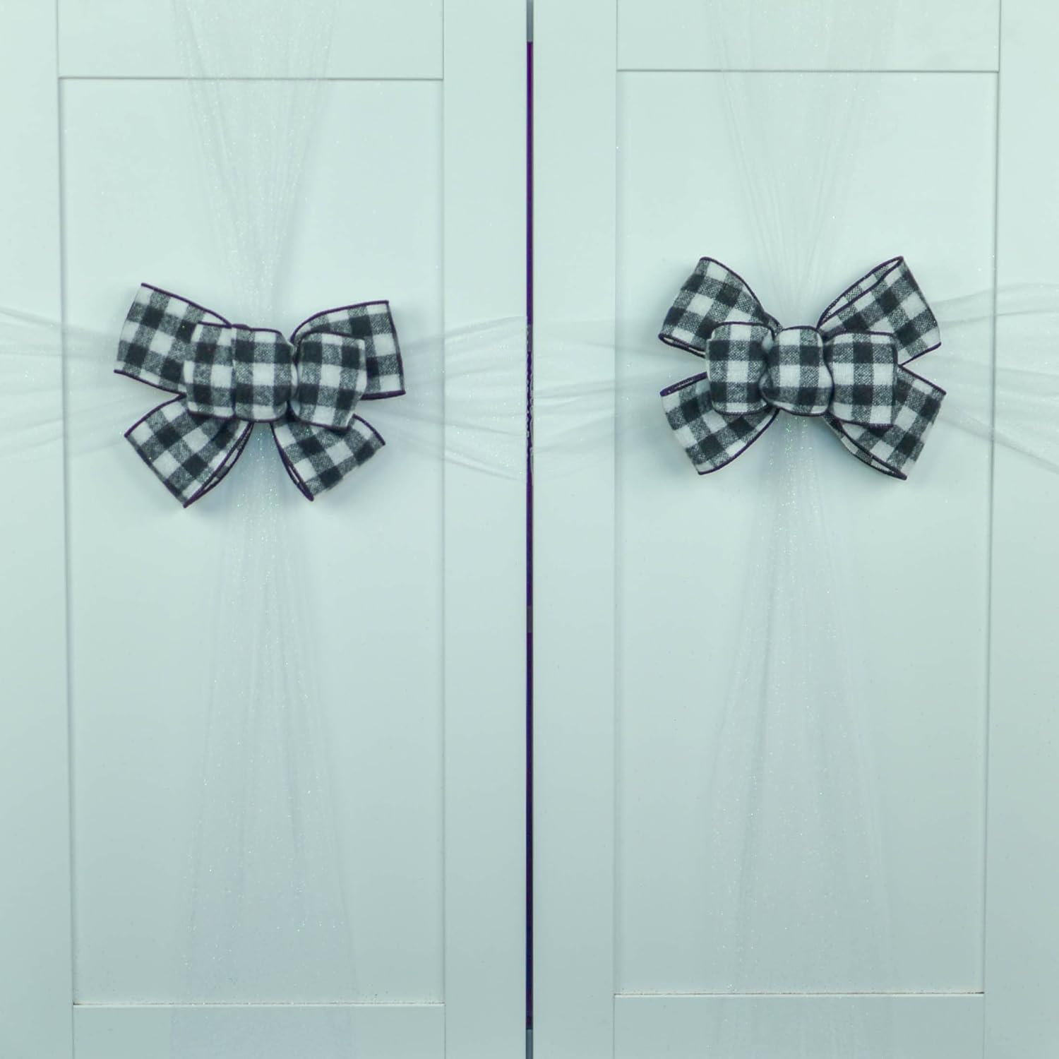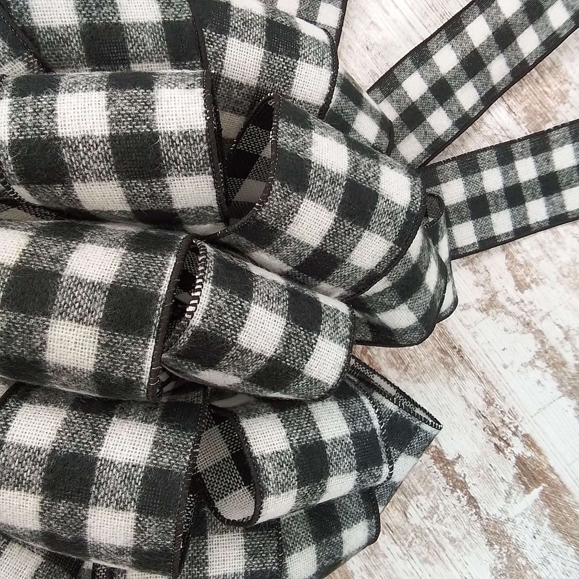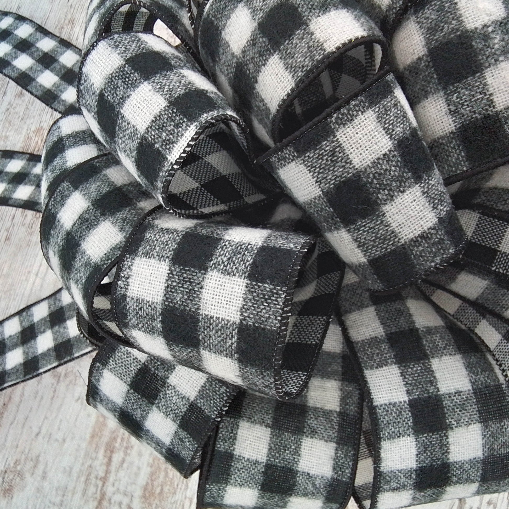 Buffalo Check Bow Christmas Tree Toppers | Black White Plaid with Tails