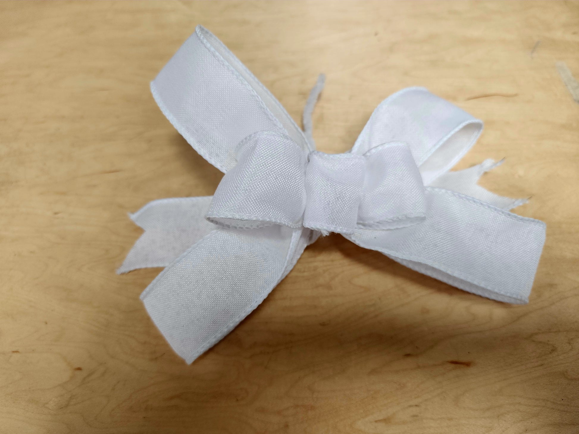 These bows are available in lots of colors and include a pipe cleaner to attach to a tree, an existing wreath, staircase rail, etc. This bow measures 10 inches wide